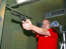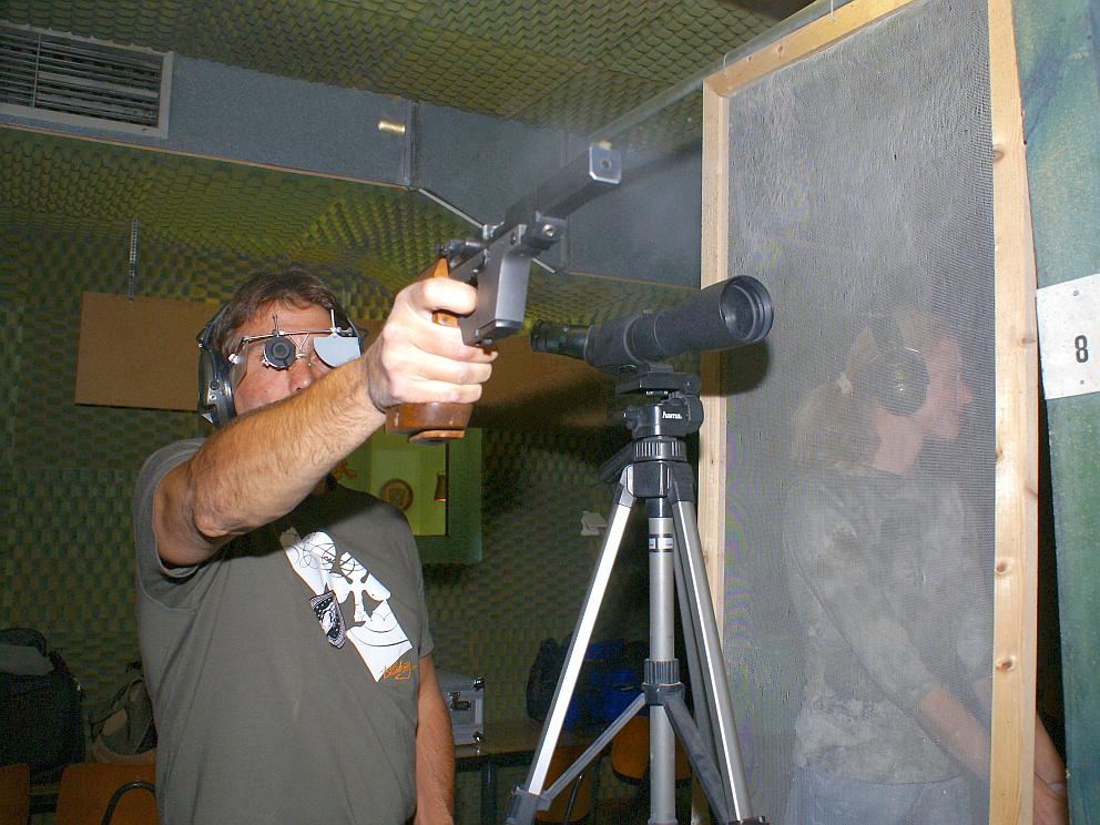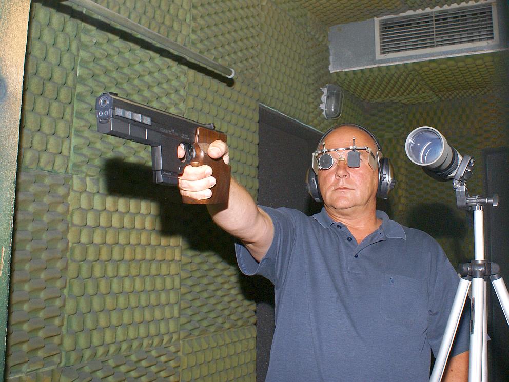 Herbert schießt eine Walther Sportpistole Kaliber.22 lfB.