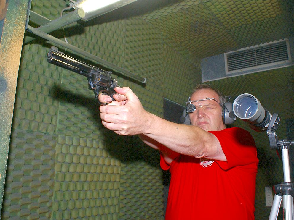 Günter mit dem S&W Revolver im Kaliber .44 Magnum.