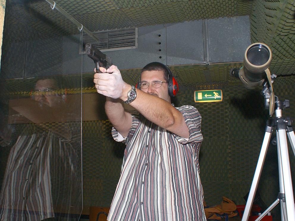Boris mit einer Sig Sauer Kaliber .45 ACP.