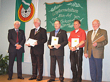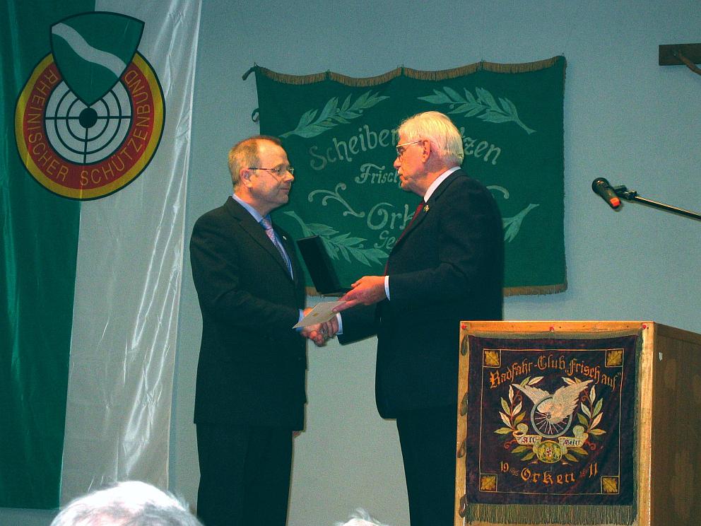 Für ihre besonderen Verdienst im Vorstand und im Schützenwesen wurden Renate Thives, Hubert Grohn, Franz Thives und Heinrich Weid mit einer Verdienstnadel in Gold, Heinz Königs mit einer Verdienstnadel in Silber und Josef Glasmacher mit einer Verdienstnadel in Bronze ausgezeichnet. Darüber hinaus wurden die langjährigen Mitglieder Alfred Jokisch und Hubert Grohn für ihre Verdienste im Verein zu Ehrenmitgliedern ernannt.